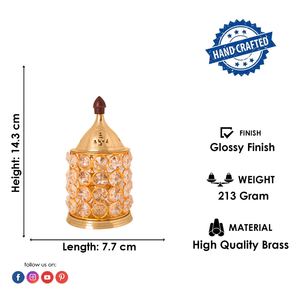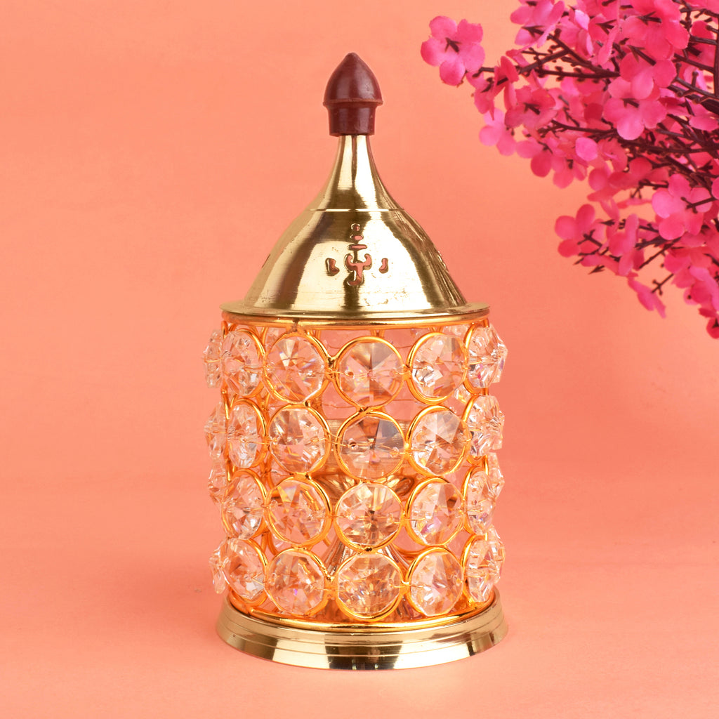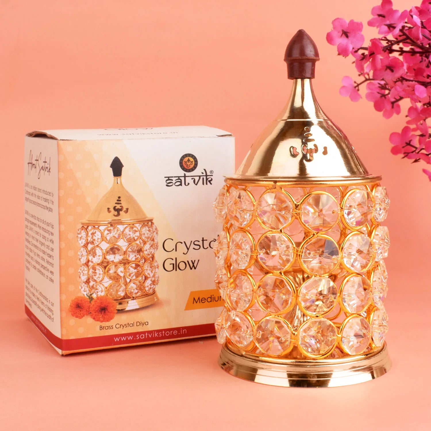 Product Name - Brass Crystal Glow Chimney Diya - 1 Pc
