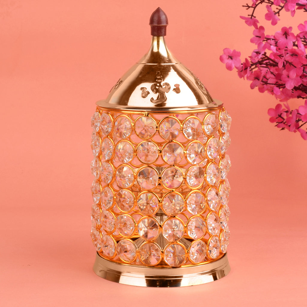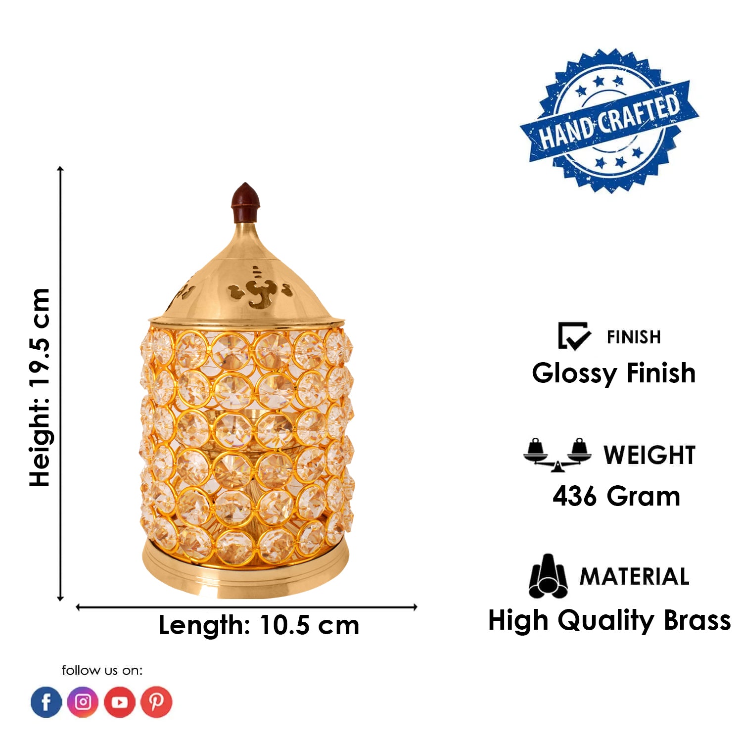 Product Name - Brass Crystal Glow Chimney Diya - 1 Pc