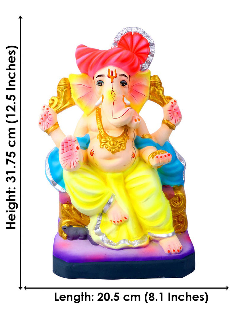 Product Name - 12.5 Inch Vishwamukha Eco-Friendly Ganpati Ganesha Murti in Lalbagh Raja Position