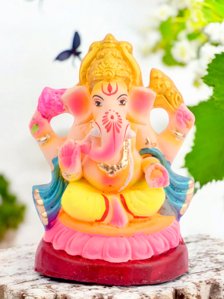 Product Name - 6.5 Inch Shayana Ganesha Eco-Friendly Idol in Padmasana with Blue Patka
