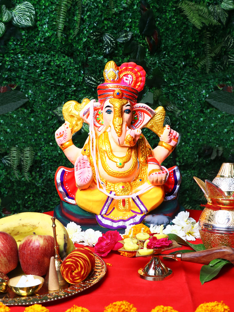 Product Name - 14 Inch UmaPutra Inch Eco-Friendly Ganpati Ganesha Murti on Dagdusheth Pose