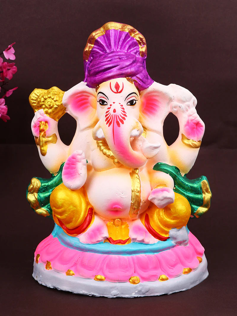 8 Inch Kshipra Eco-Friendly Ganesha Idol in Padmasana Pose of Ganpati – Festaholic.com