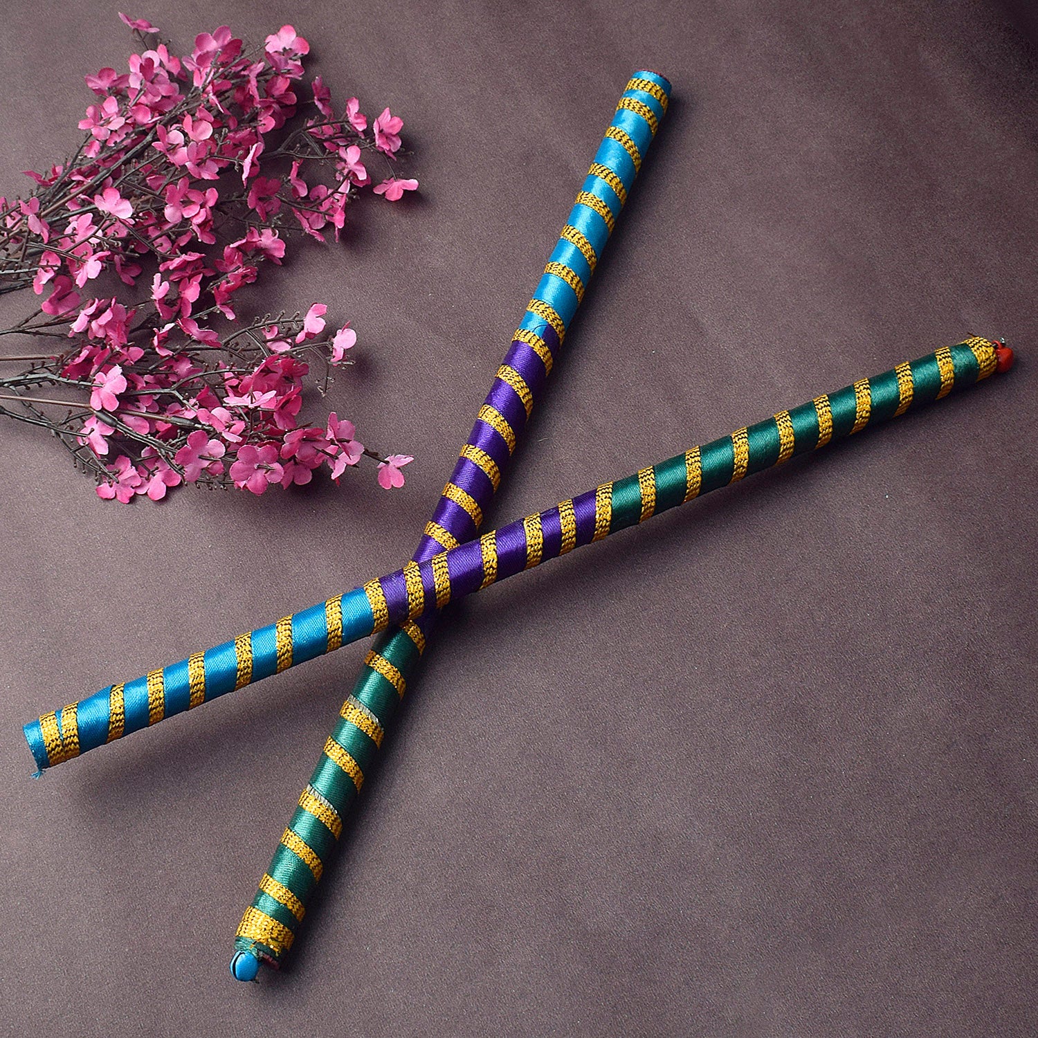 Wooden Handmade Traditional Dandiya Sticks. Multi color Dandiya Sticks decorated with lace fabric all over the dandiya with Silk fabric at the bottom of the Stick. These Dandiya Sticks is Perfect for Navaratri Festival or any other Dance Festivals which gives prefect festive look, This is made in India product by the artisan of India. Dandiya sticks for women, wooden dandiya sticks, Navratri festival, dance sticks, Navratri dandiya, dandiya sticks bulk, dandiya backdrop.