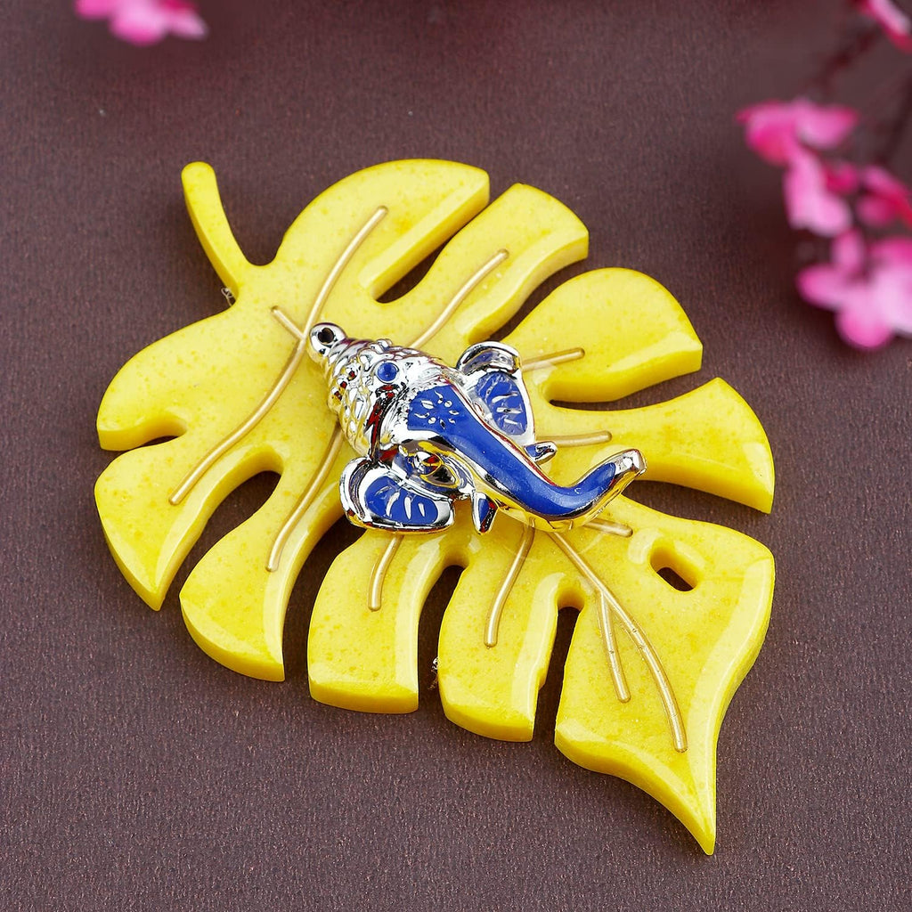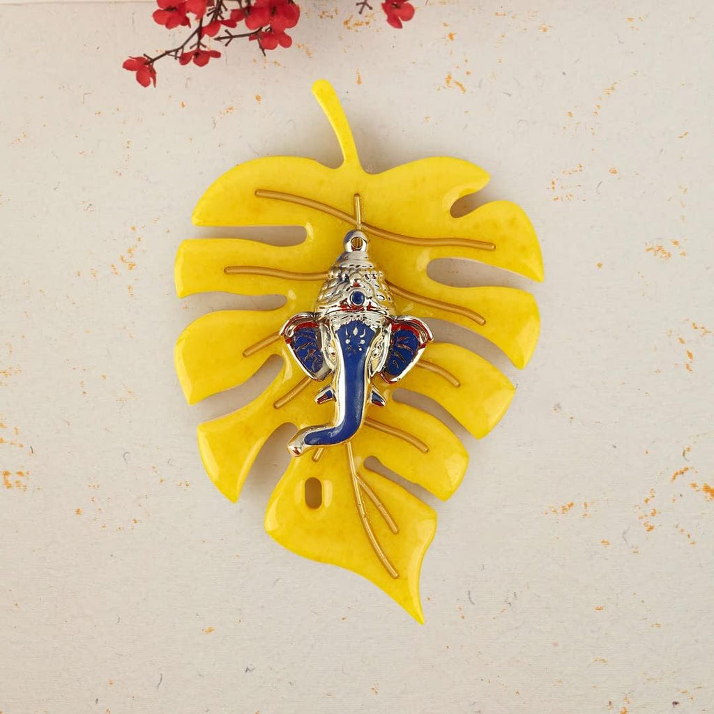Product Name - Resin Leaf Ganesh - Yellow
