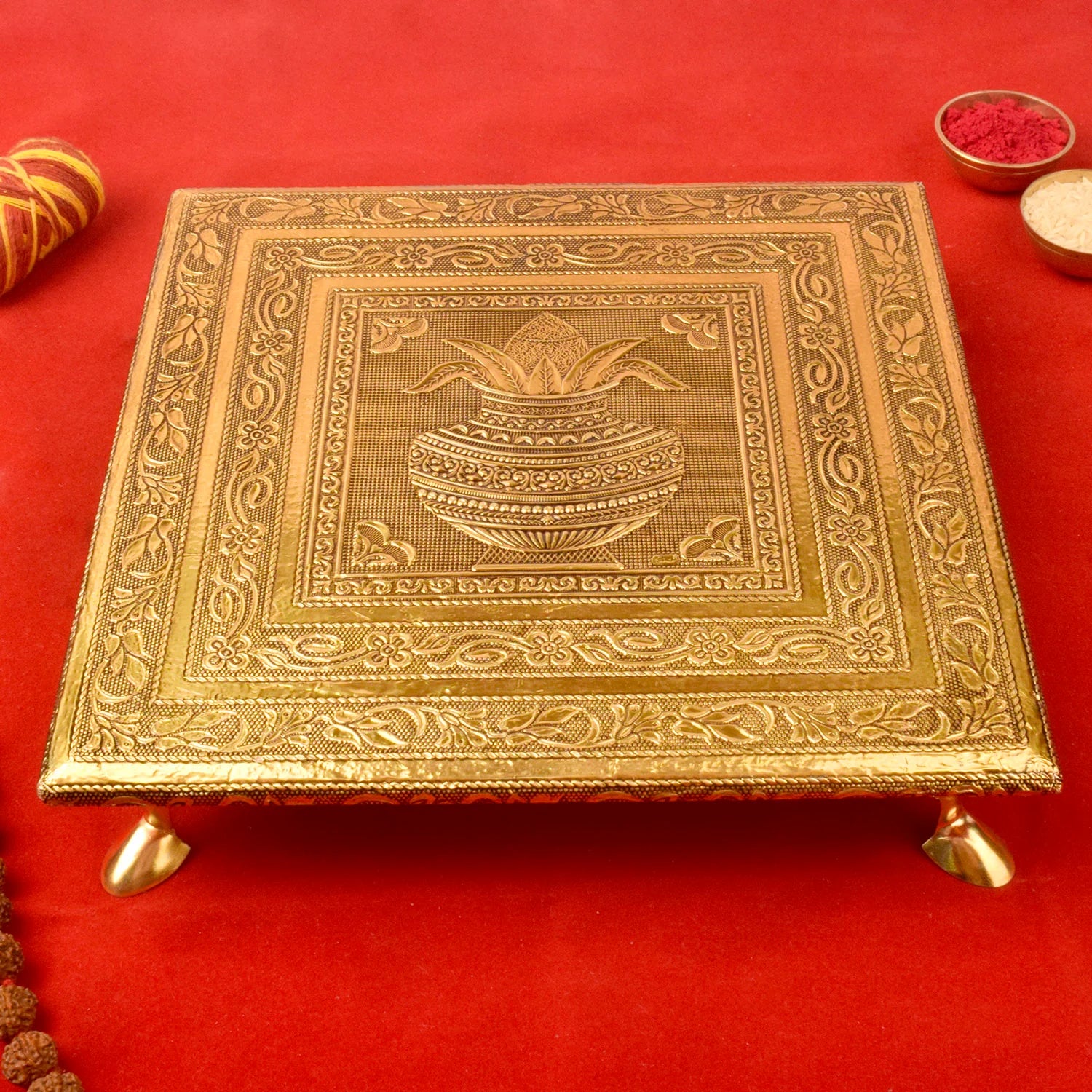 Product Name - Wooden Kalash Chowki - 10 Inch