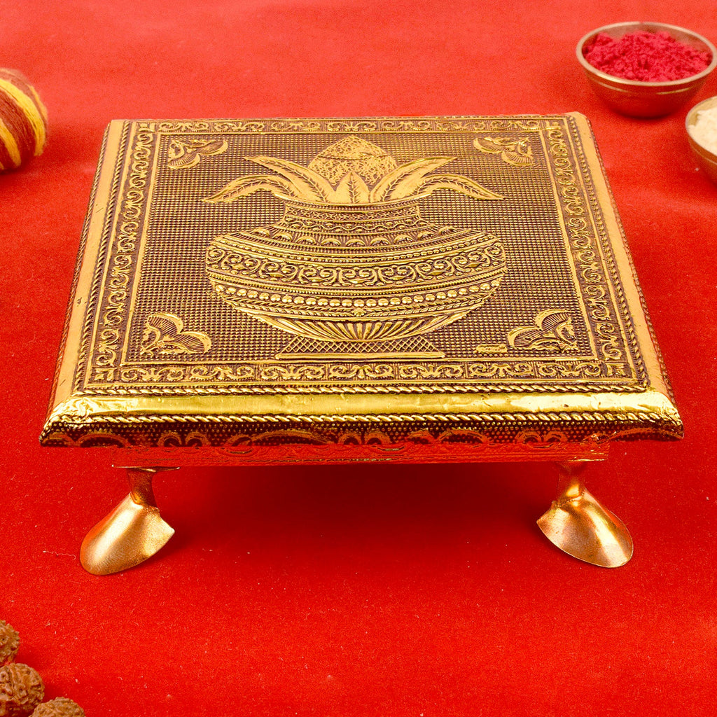 Product Name - Wooden Kalash Chowki - 6 Inch