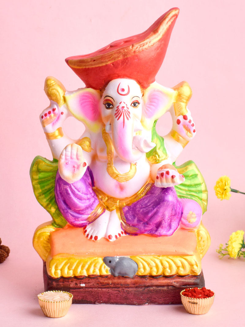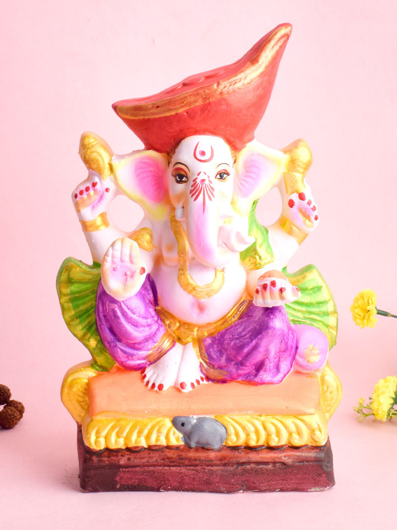 • Material - Eco Friendly Ganesha Idols are Made of 100% Bio-degradable Eco Friendly Mud/Mitti. Shadu Matti Clay.