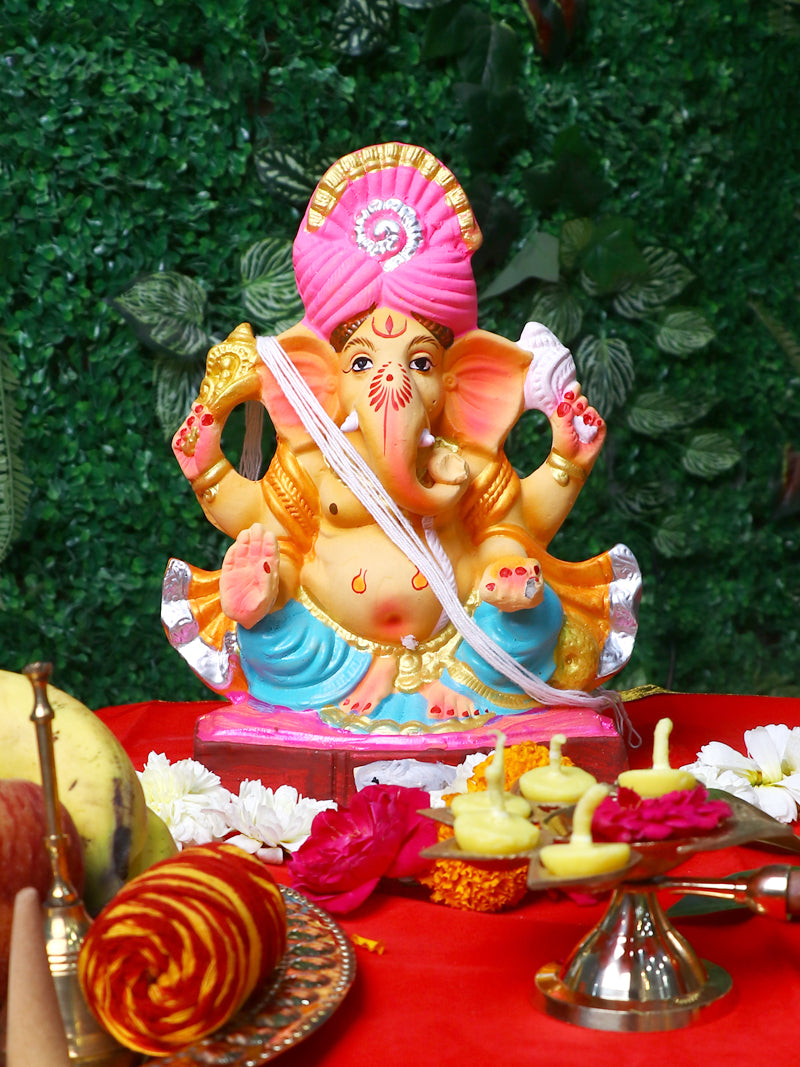 Product Name - 10 Inch Kripalu Eco-Friendly Ganesha Idol in Shethjii Position of Ganpati