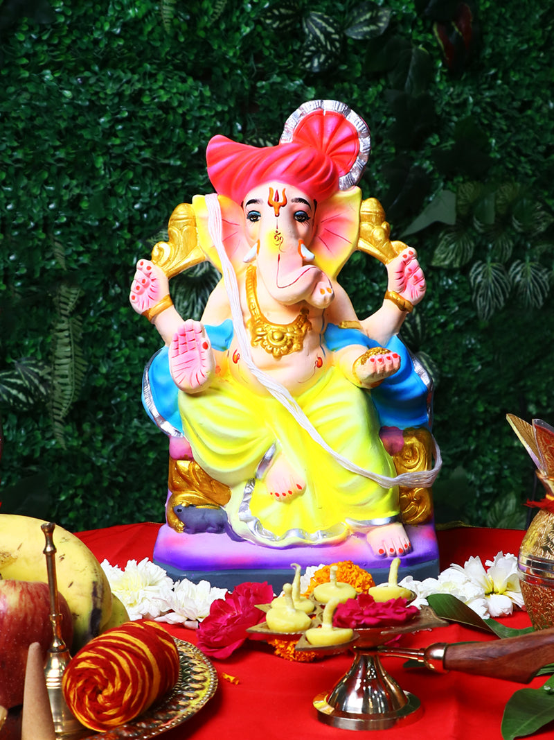 Product Name - 12.5 Inch Vishwamukha Eco-Friendly Ganpati Ganesha Murti in Lalbagh Raja Position