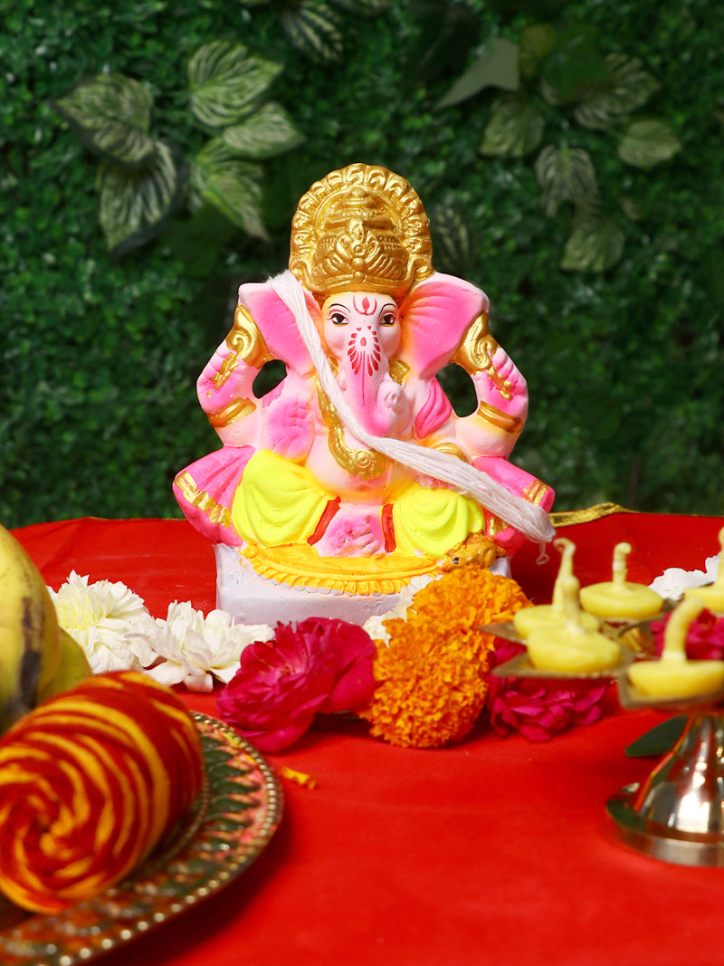 Product Name - 6.5 Inch Gajavaktra Eco-Friendly Ganesha Idol in Siddhasana Pose of Ganpati
