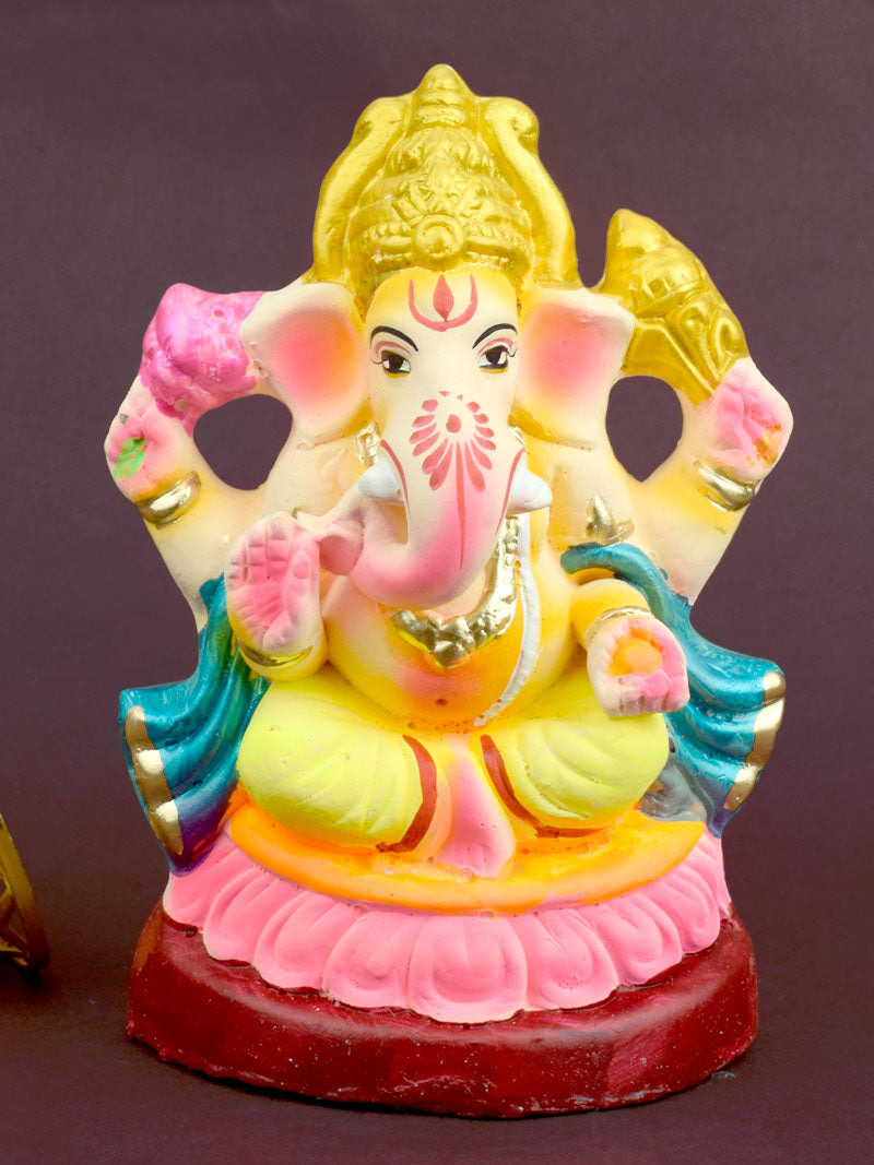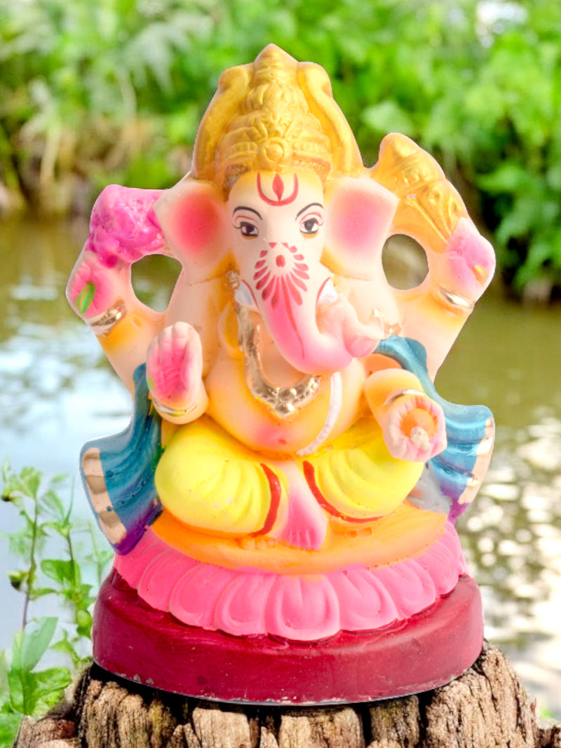 Product Name - 6.5 Inch Shayana Ganesha Eco-Friendly Idol in Padmasana with Blue Patka