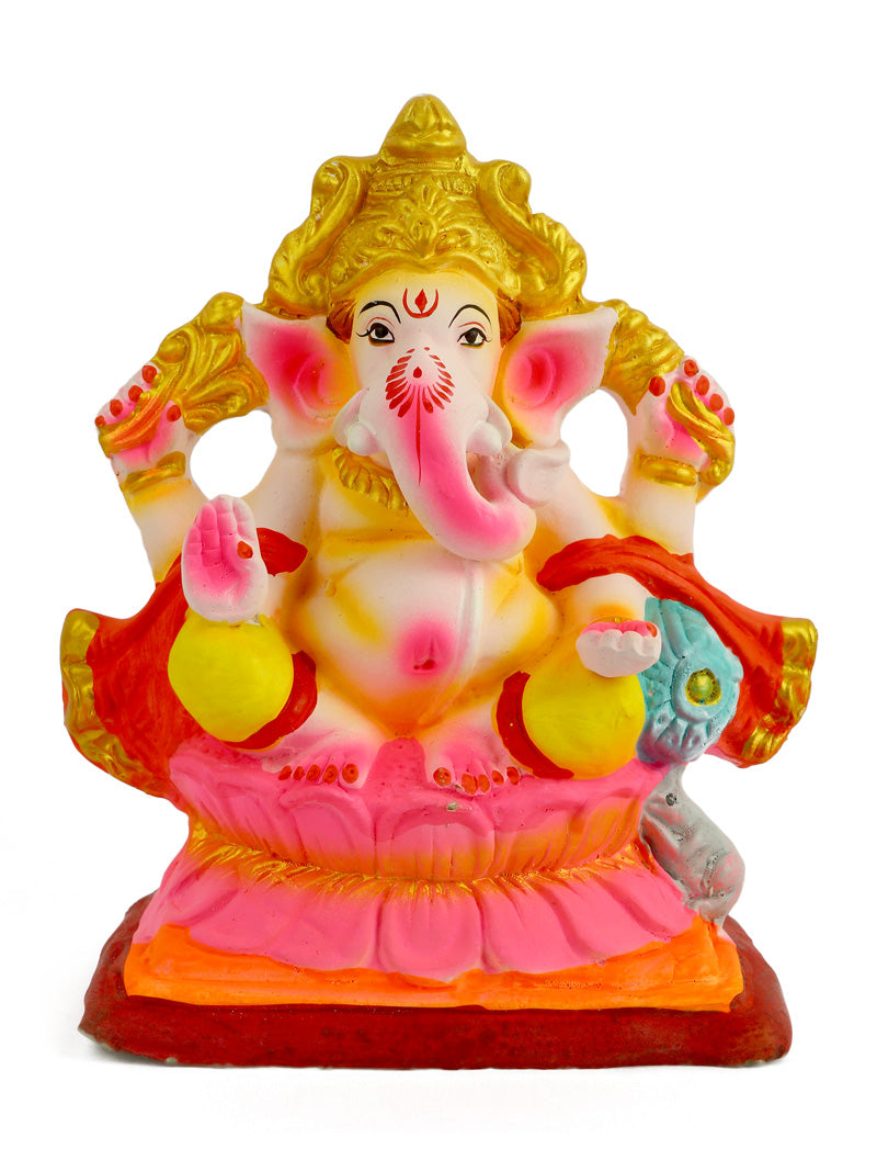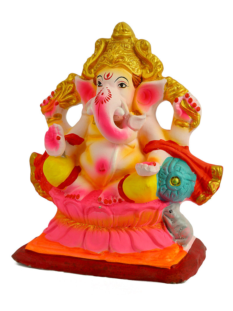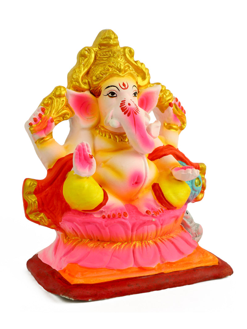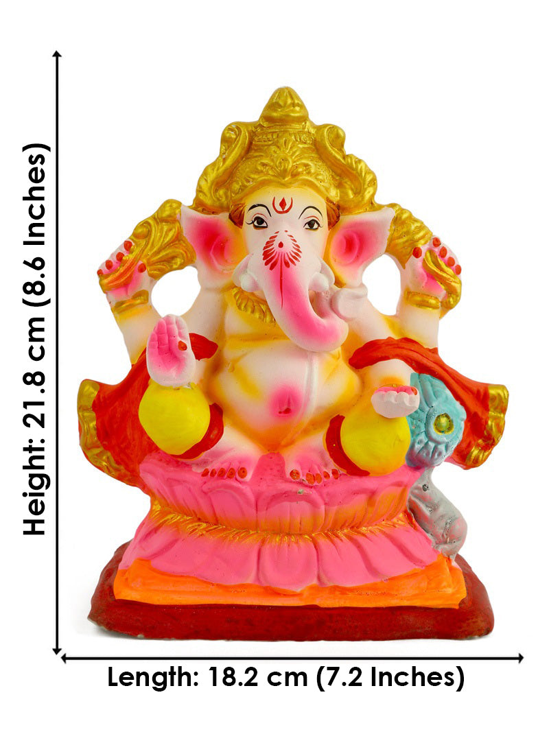 Product Name - 8.5 INCH Skandapurvaja Eco Friendly Ganesha With Pagdi in Gajanan Pose of Ganpati