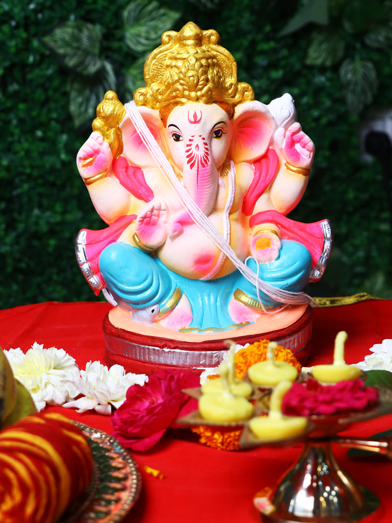 Product Name - 8 Inch Vikat Eco-Friendly Ganesha Idol in Padmasana Pose of Ganpati