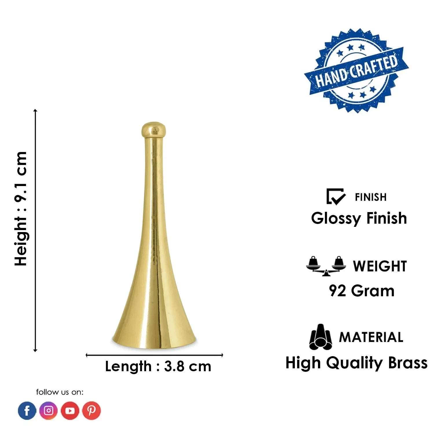 Product Name - Brass Cone Shape Puja Bell - 4.5 Inch