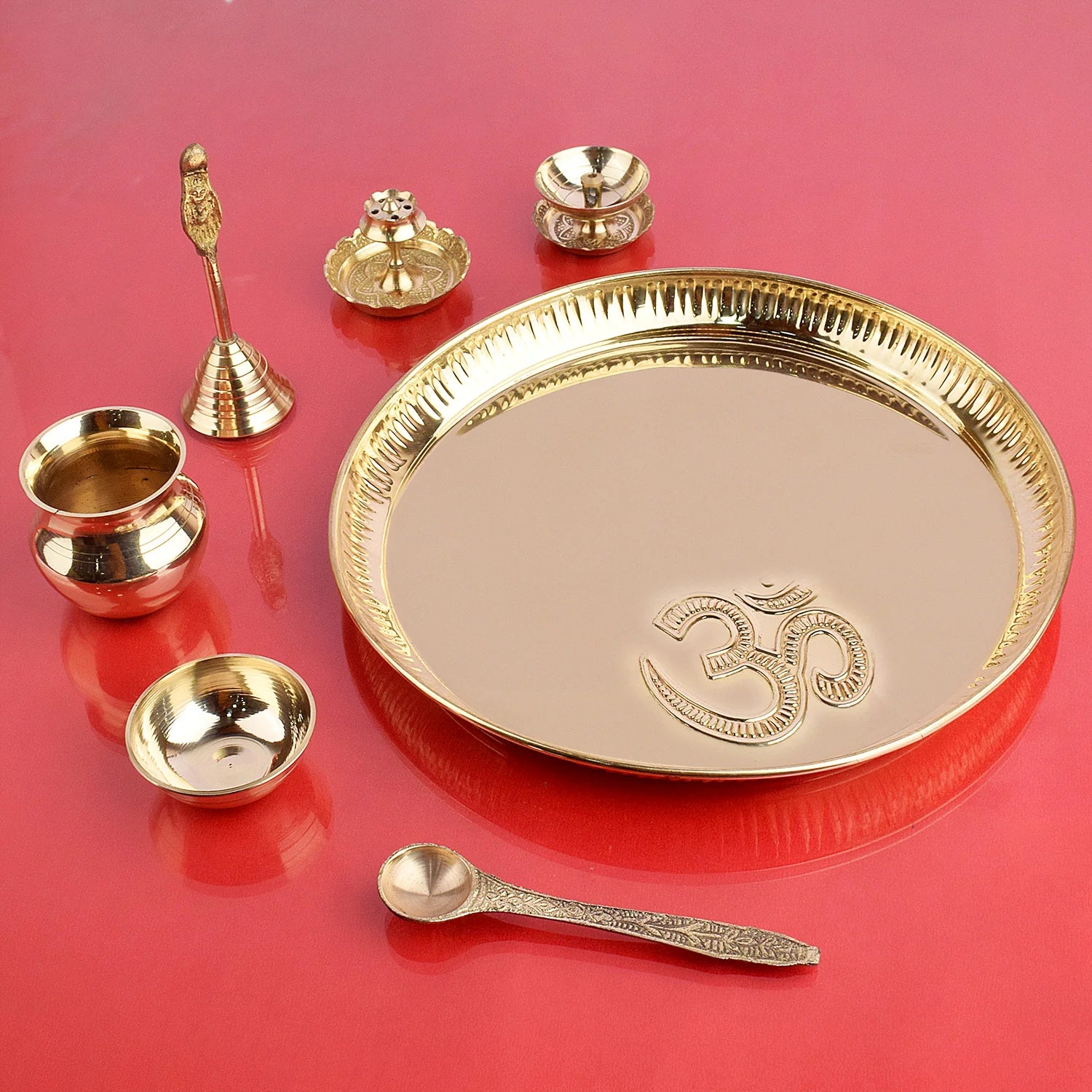 Product Name - Brass Puja Thali Set 10 Inch - 7 Pc