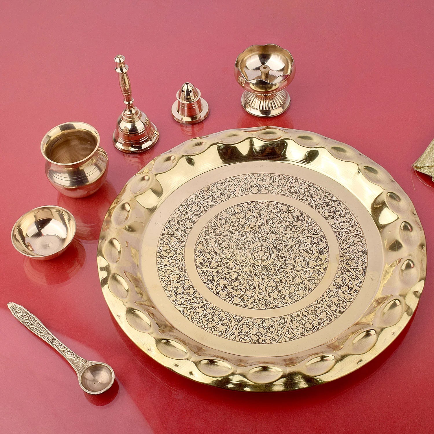 Product Name - Brass Puja Thali Set 10 Inch - 7 Pc